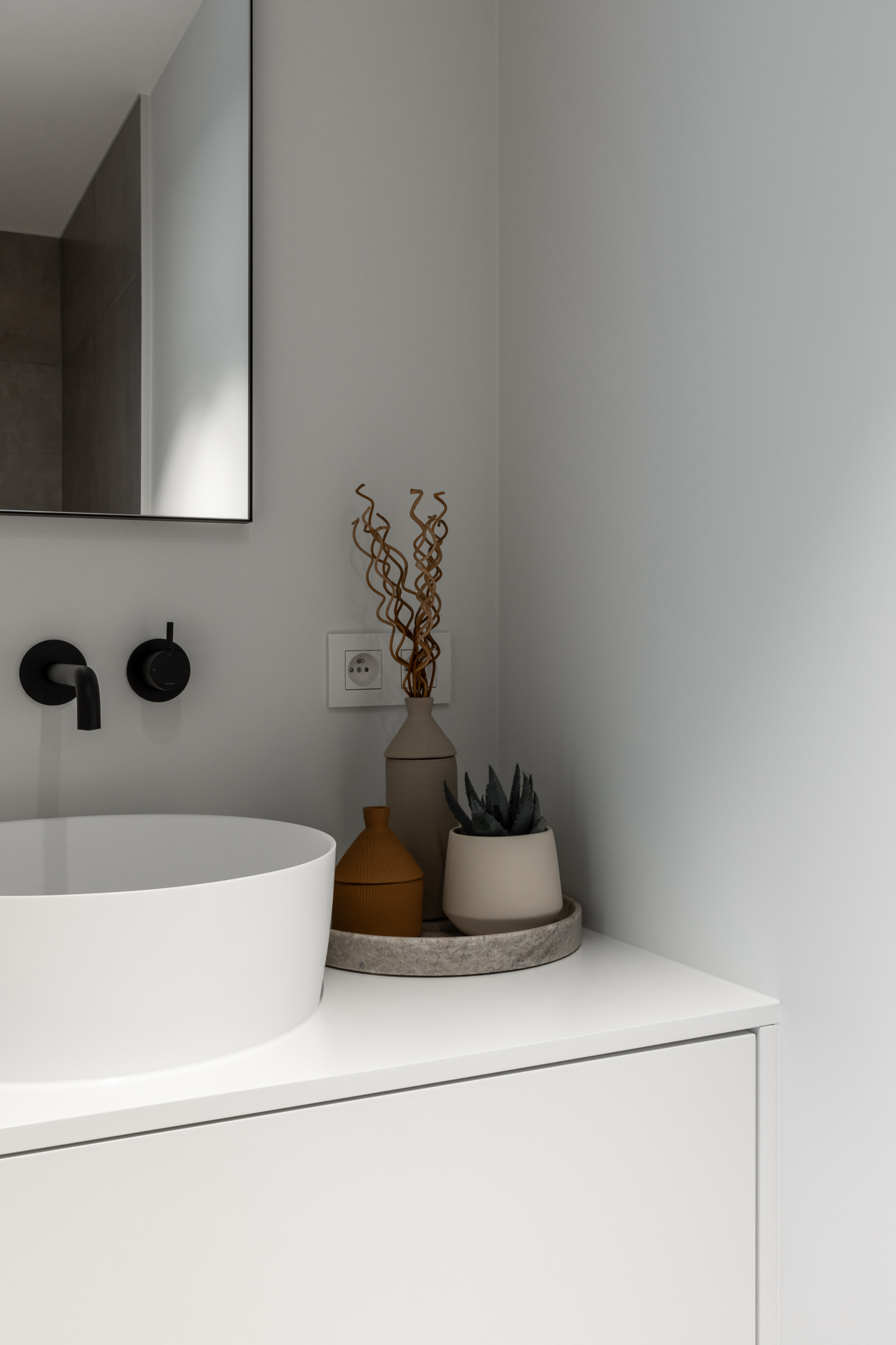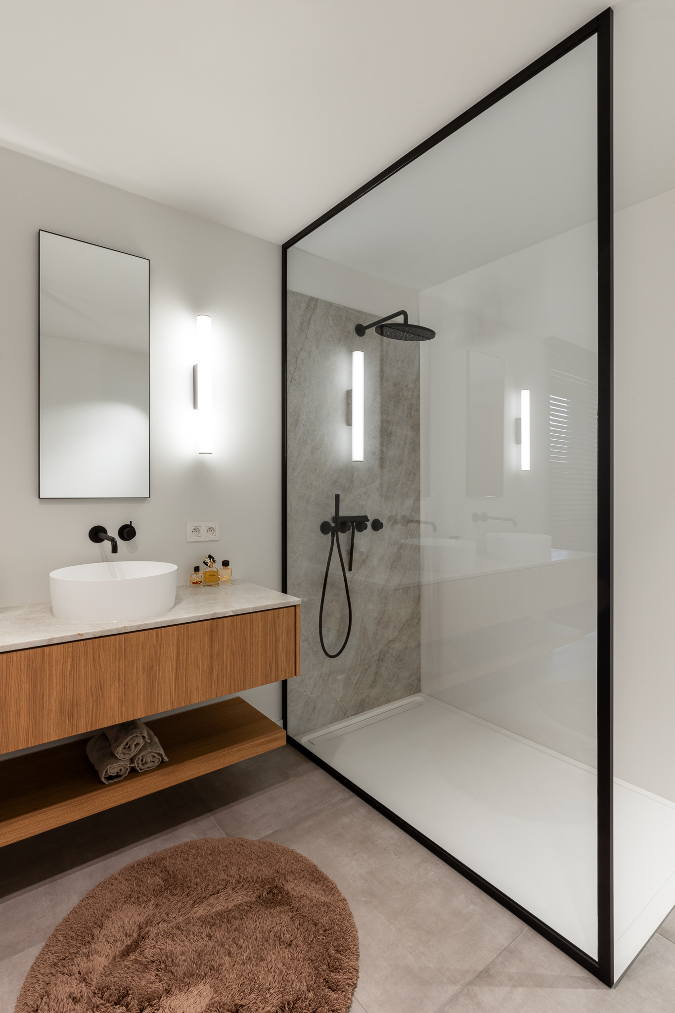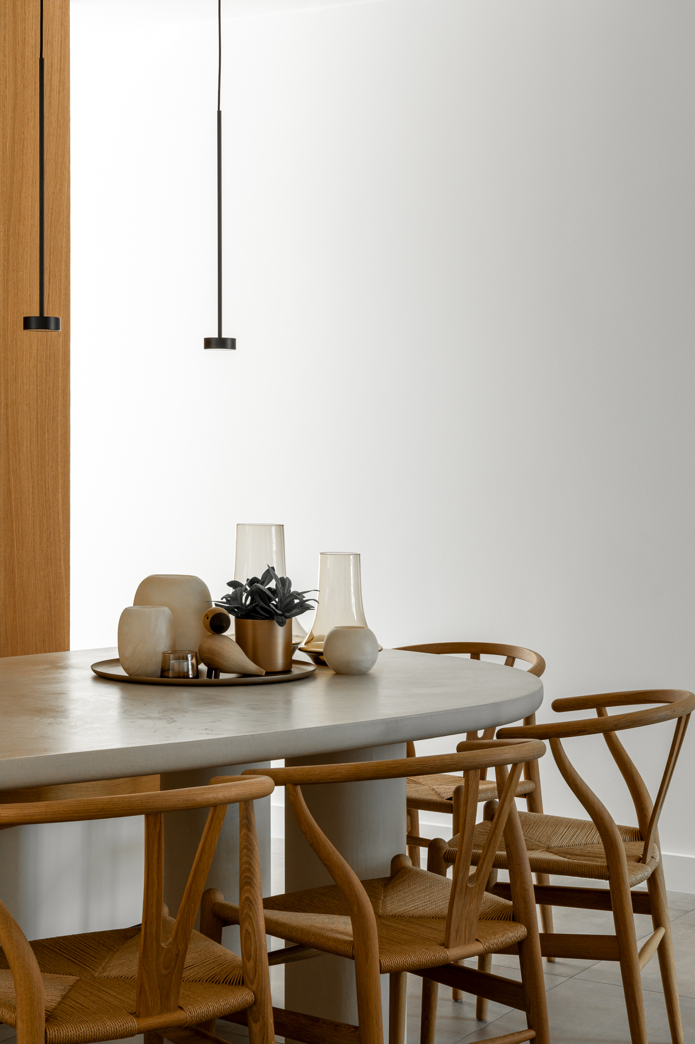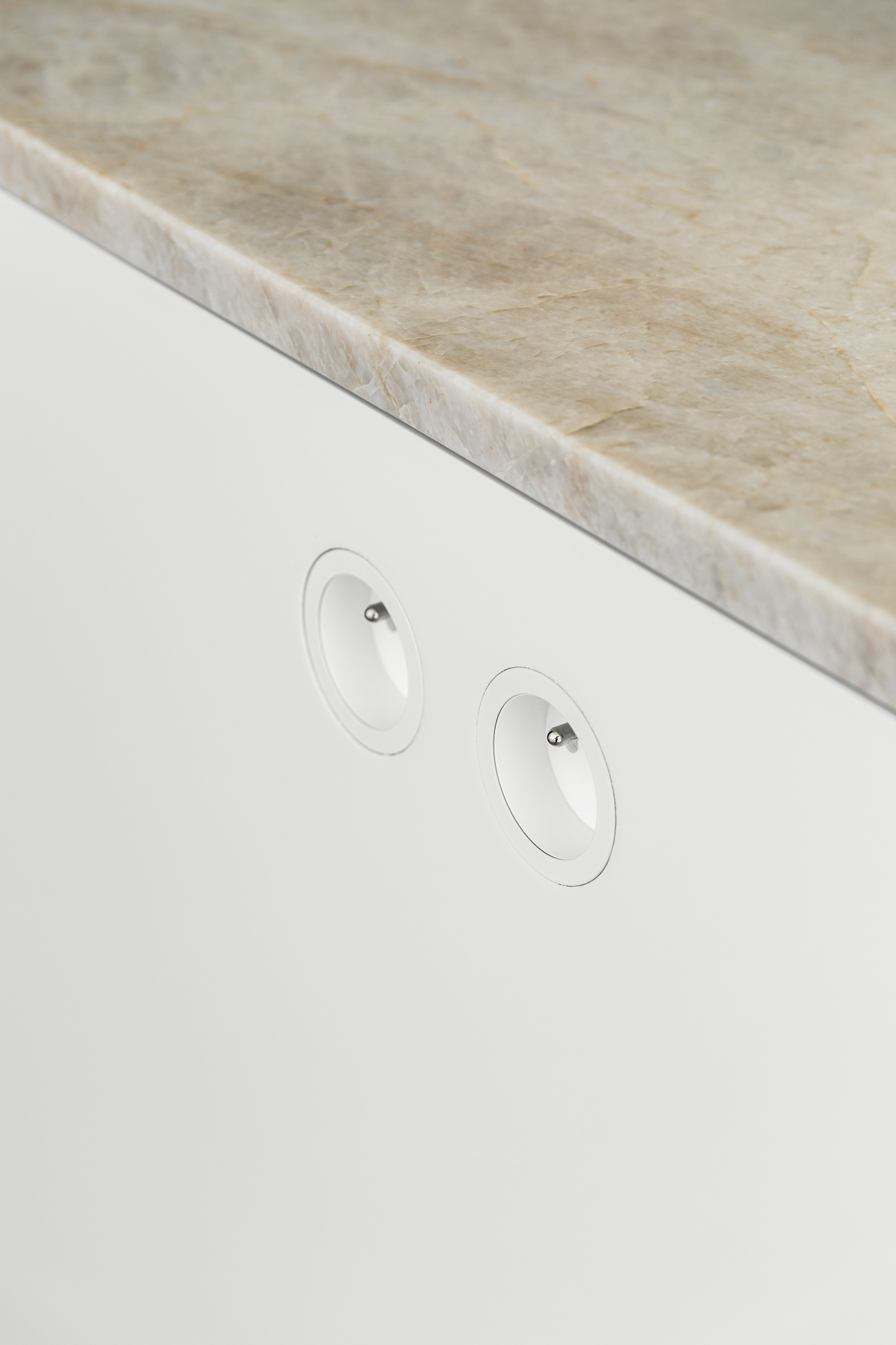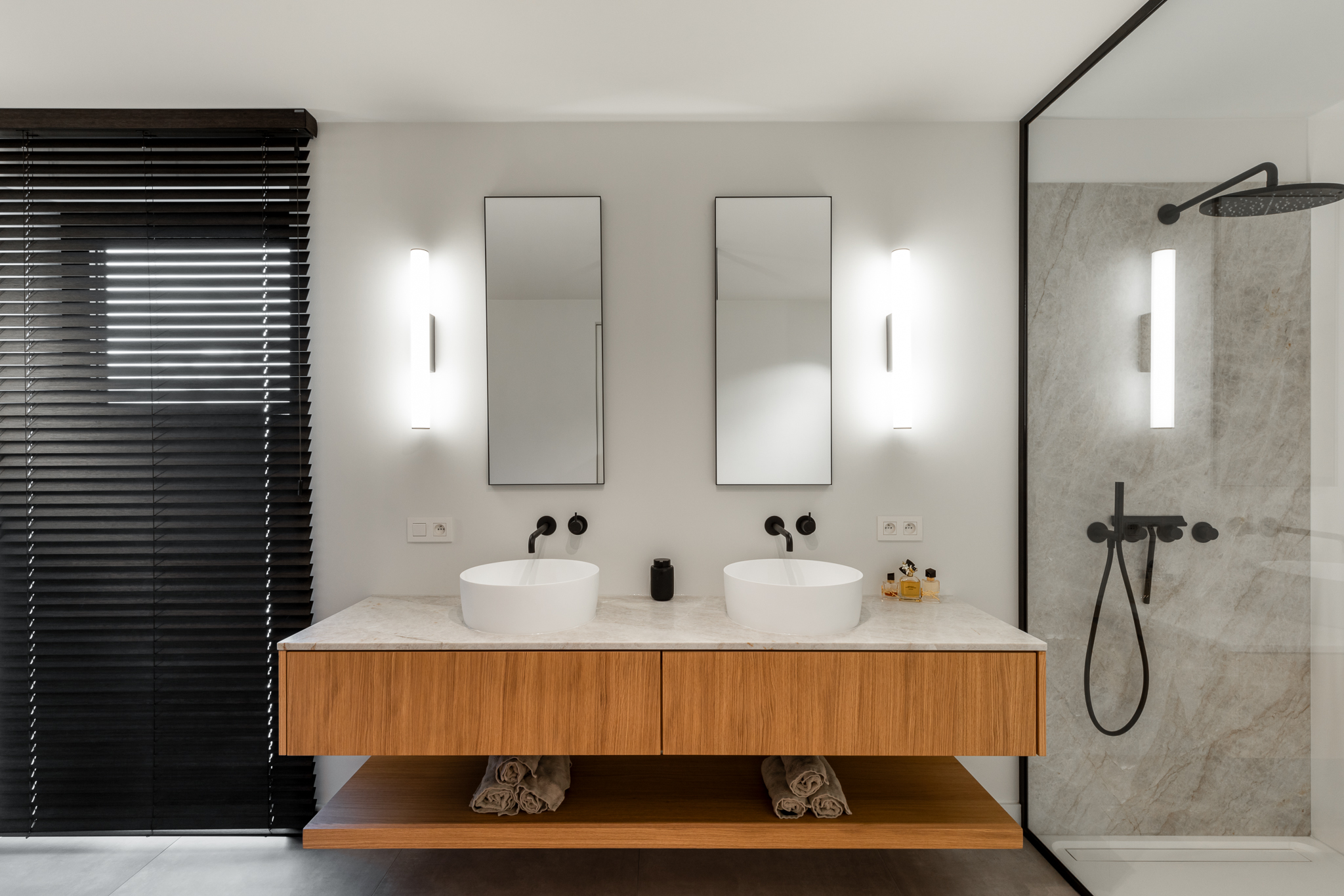 In deze woning werd het volledige interieur ontworpen door interieurarchitecte Christel Goossens. De klant koos voor prachtige, tijdloze materialen die doorheen de gehele woning werden doorgetrokken. De eik fineer voorzien van naturelle vernis, in combinatie met wit lakwerk geeft een strak maar warm geheel.