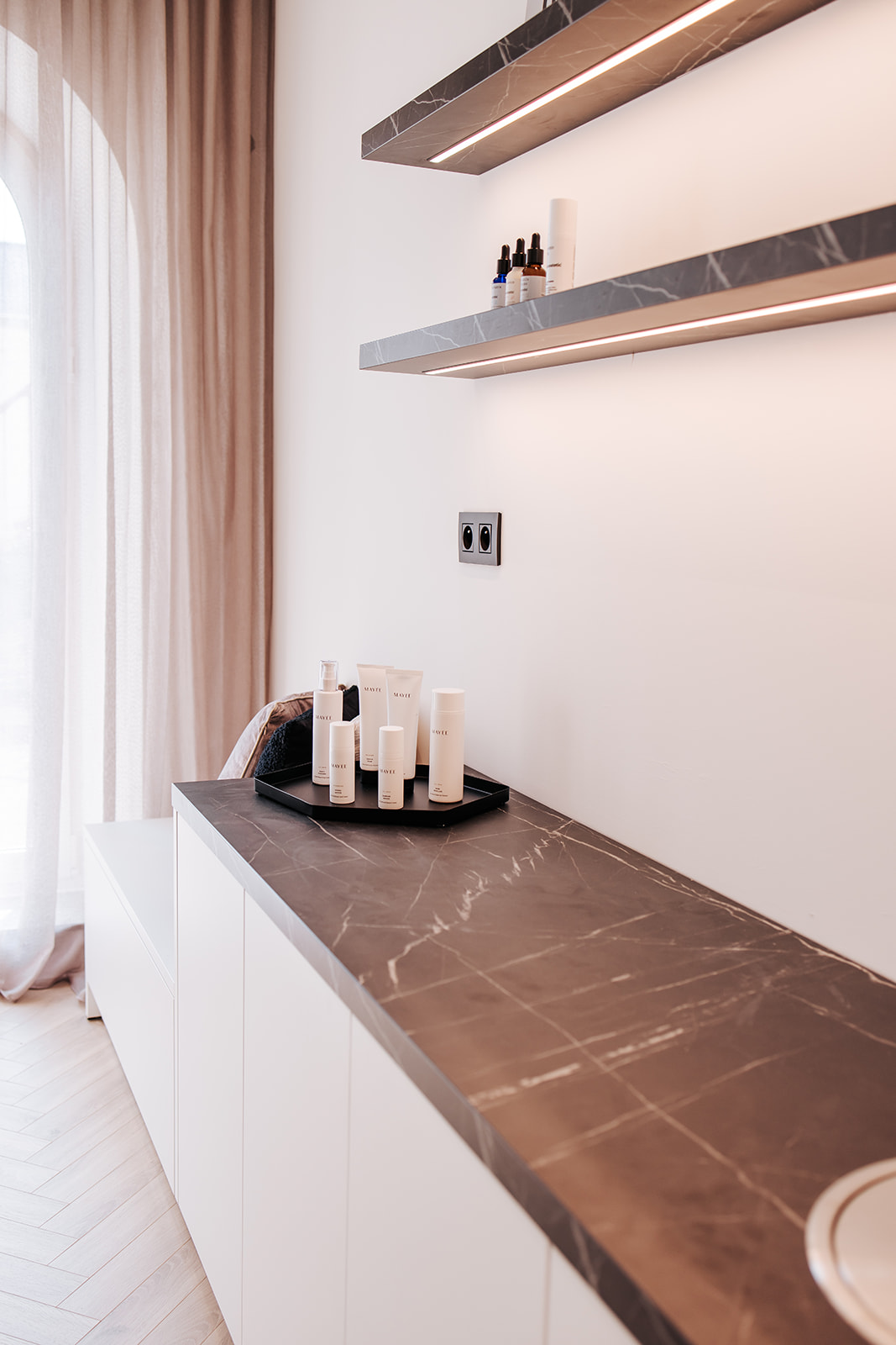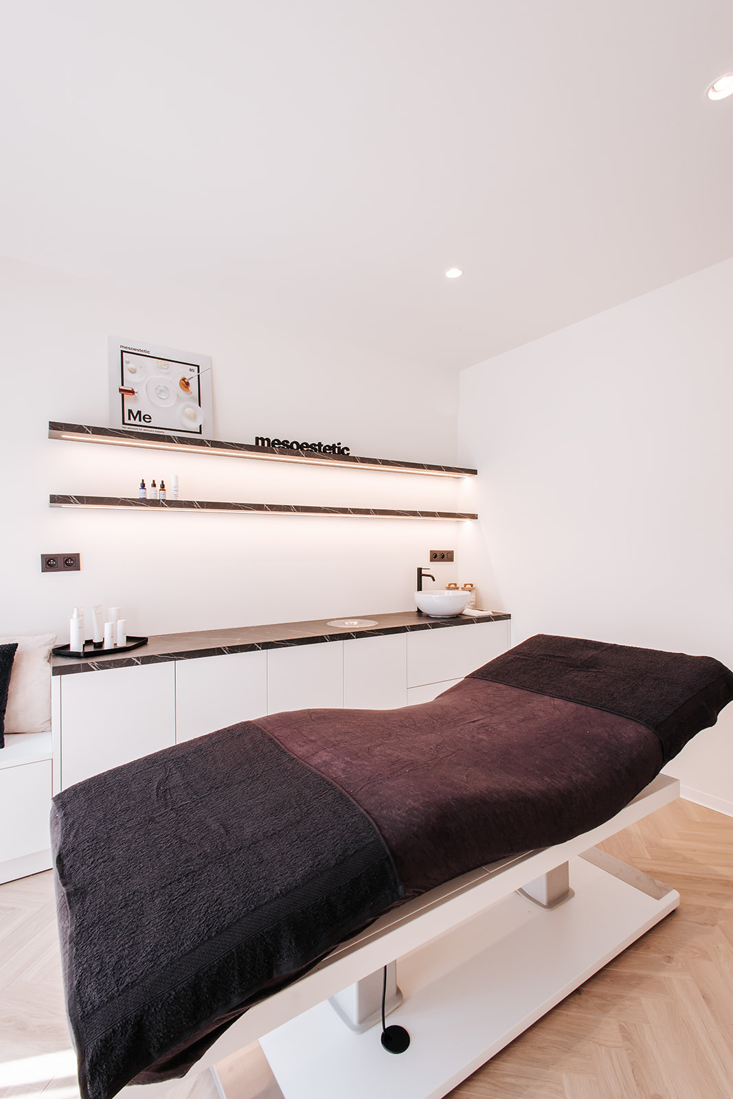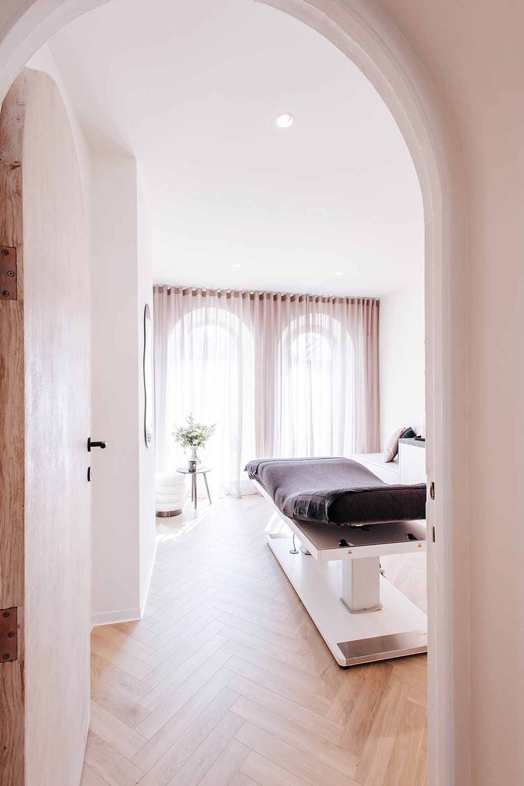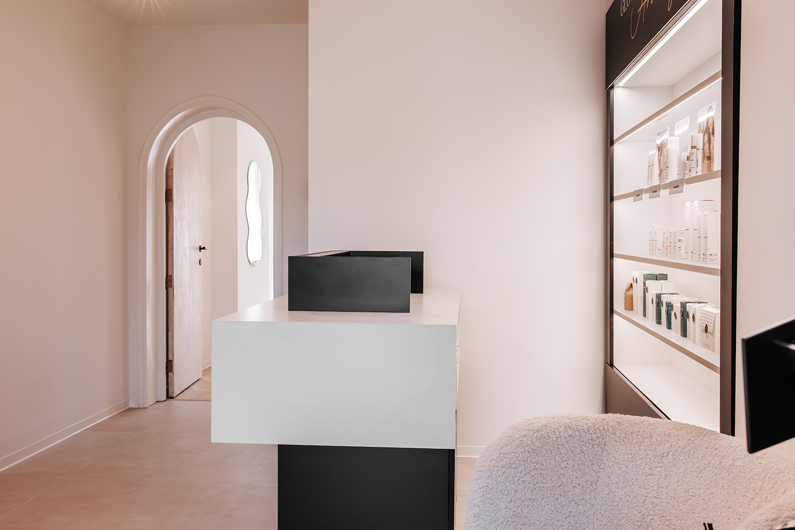 Voor dit project gingen we ALL IN! We mochten de volledige renovatie van het gelijkvloers voor onze rekening nemen en toverden zo een bestaande woning om naar een pand waar wonen én werken mogelijk worden. We realiseerden de ruimte waar Amaury haar klanten optimaal tot rust kan laten komen. In de woongelegenheid werden verschillende ruimtes gecreëerd, waaronder badkamer, slaapkamer met dressing, kinderkamer, keuken en woonkamer.